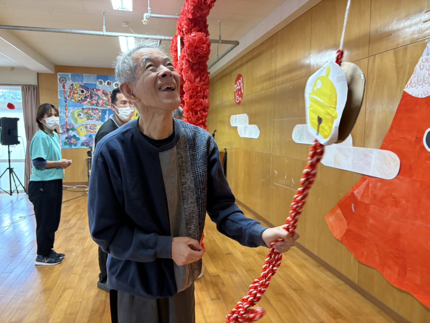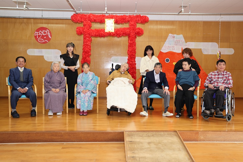 1月9日(金)多目的ホールにて、午年の利用者さん・職員の「年のお祝い」をおこないました。利用者さんの祝舞や職員による相撲甚句等で盛り上がり、楽しいひと時を楽しみました。