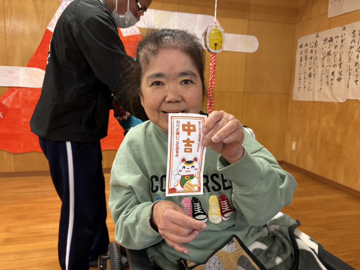 また、1/6(火)愛の浜園自治会お楽しみ会では、初詣やおみくじを楽しみました。