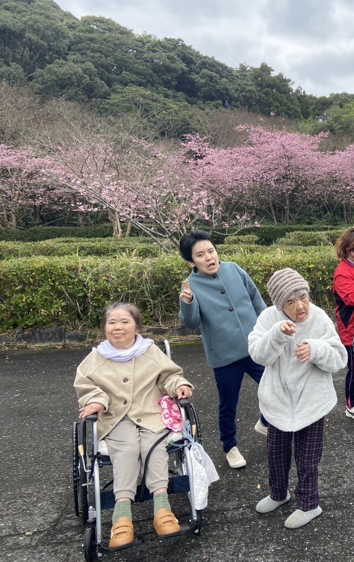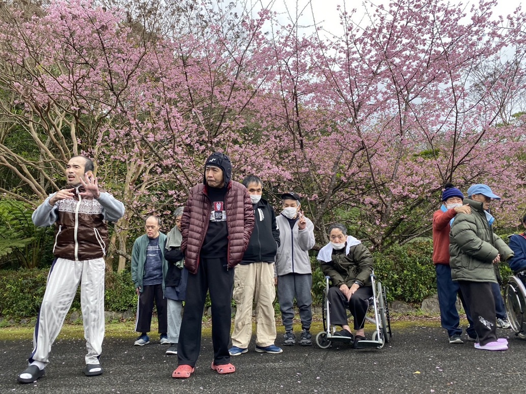 奄美の2月は、緋寒桜が開花し、愛の浜園では 、利用者さんに早春の奄美を楽しんでもらえるよう、毎年、お花見遠足(生活介護・就労支援B)を行っています。今年もその独特の濃淡が特徴的なピンク色の花で、奄美の山を彩ってくれる緋寒桜を見に行きました。