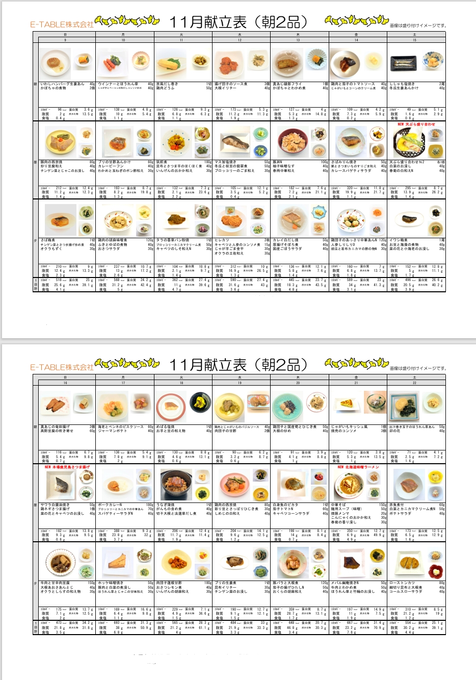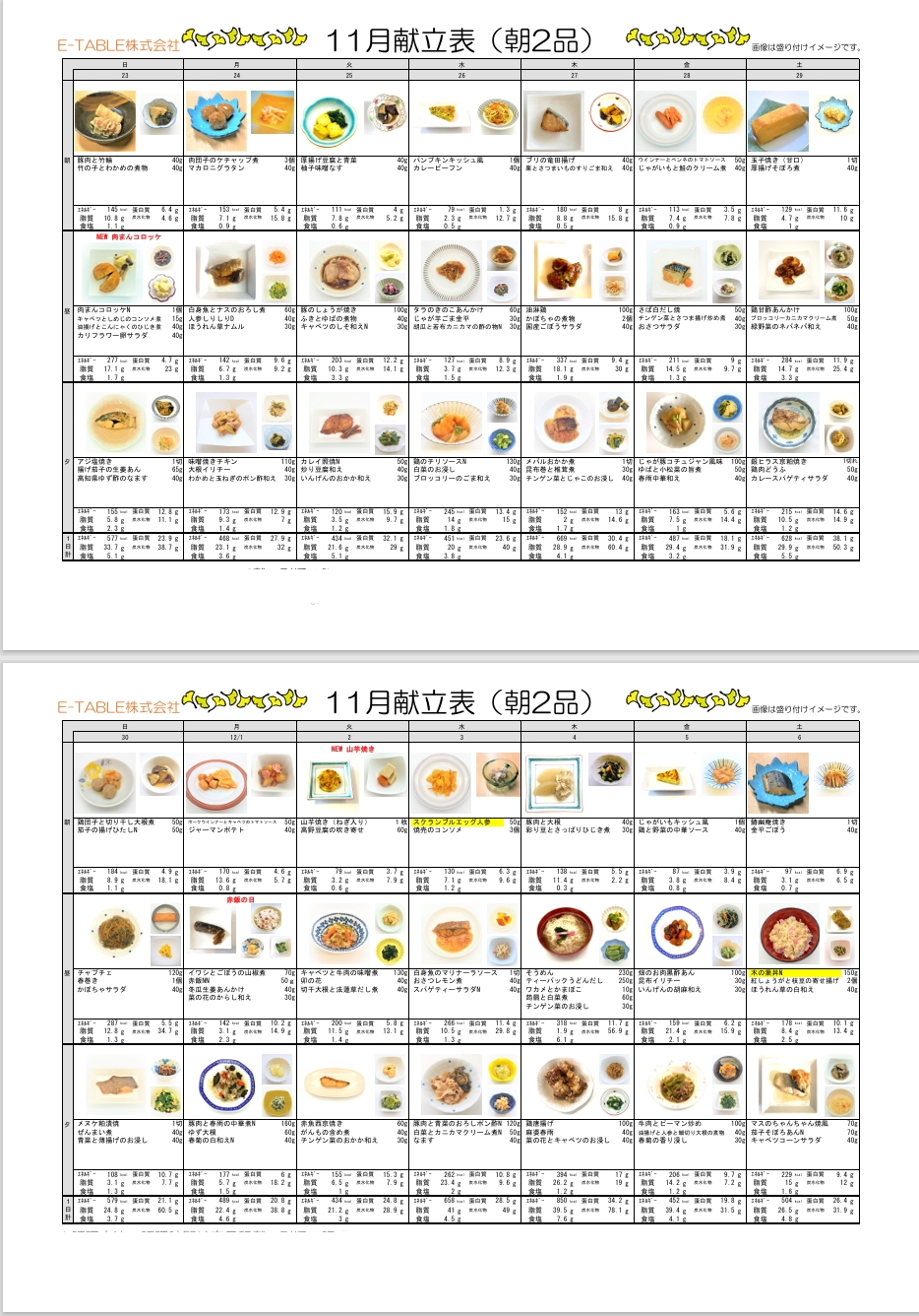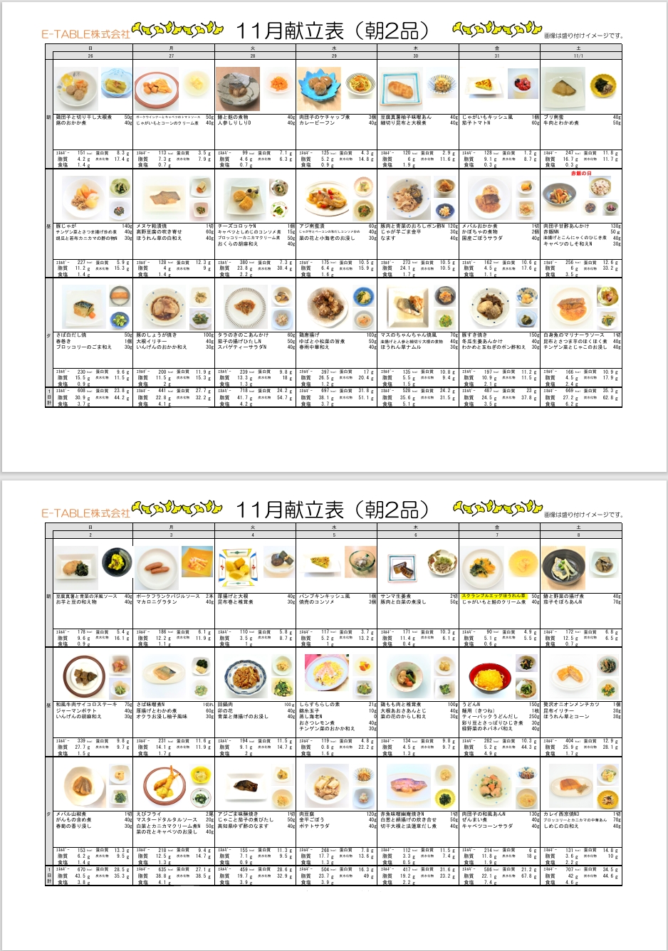 愛の浜園:11月の献立