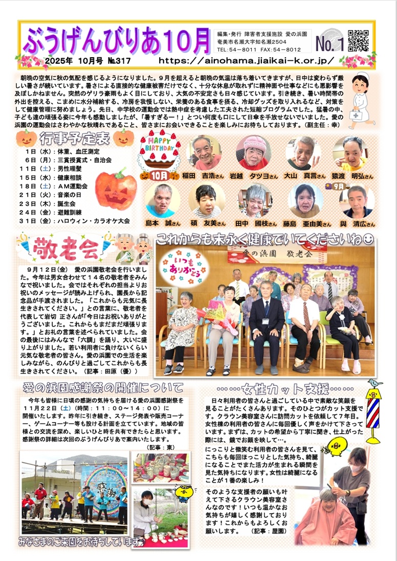 愛の浜園の広報誌「ぶうげんびりあ 10月号」を掲載しました。