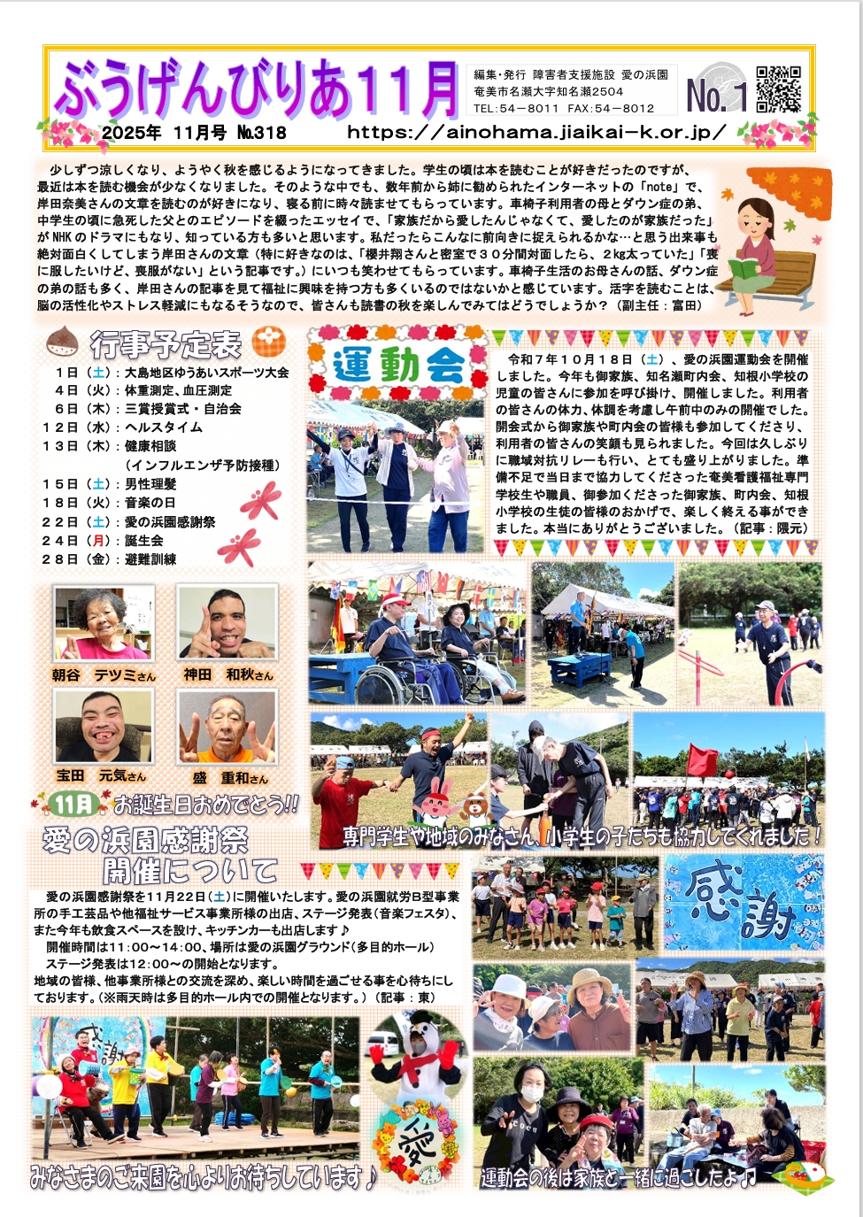 愛の浜園の広報誌「ぶうげんびりあ 11月号」を掲載しました。