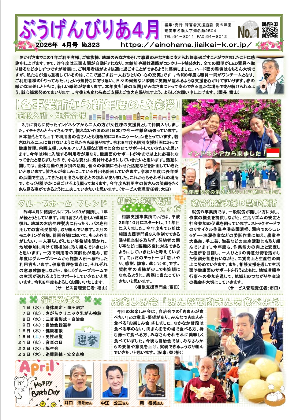 愛の浜園の広報誌「ぶうげんびりあ 4月号」を掲載しました。